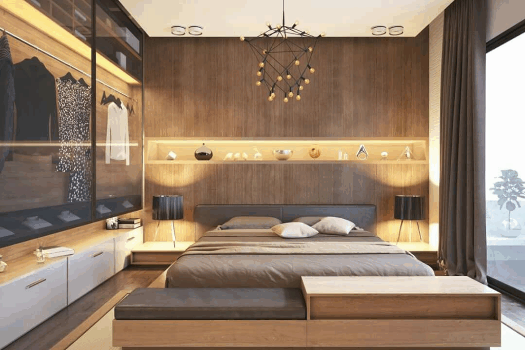 Modern woodwork is the only feature that may provide more luxury, style, and cozy warmth to your trendy master bedroom design.